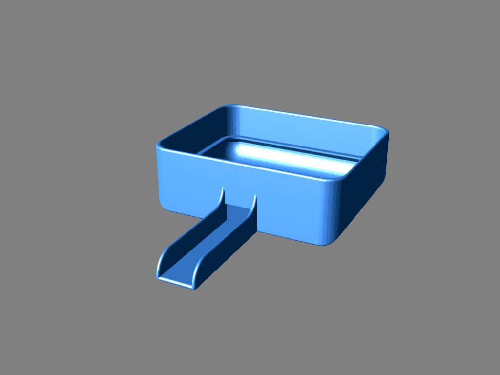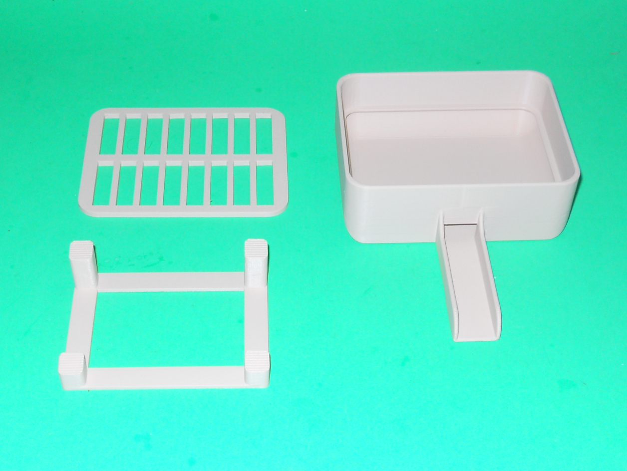 This is another bathroom soap dish. This one is angled with a drain. A few drops of glue are required to attach the stand to the body.