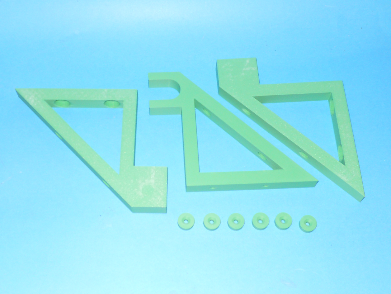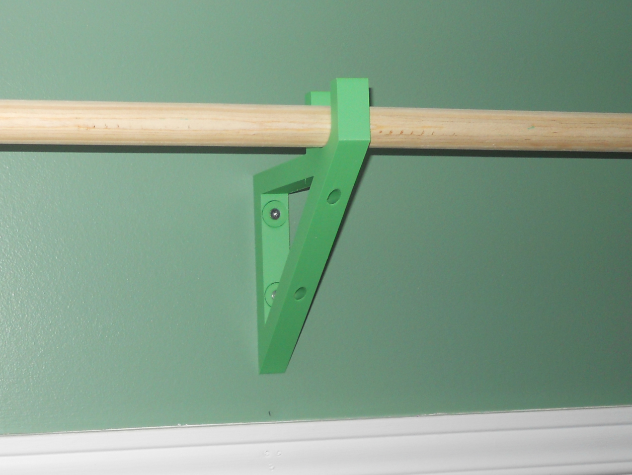 This is a parametric dowel bracket. The screw holders are printed separately to prevent the bracket from splitting if the screws are overtightened.