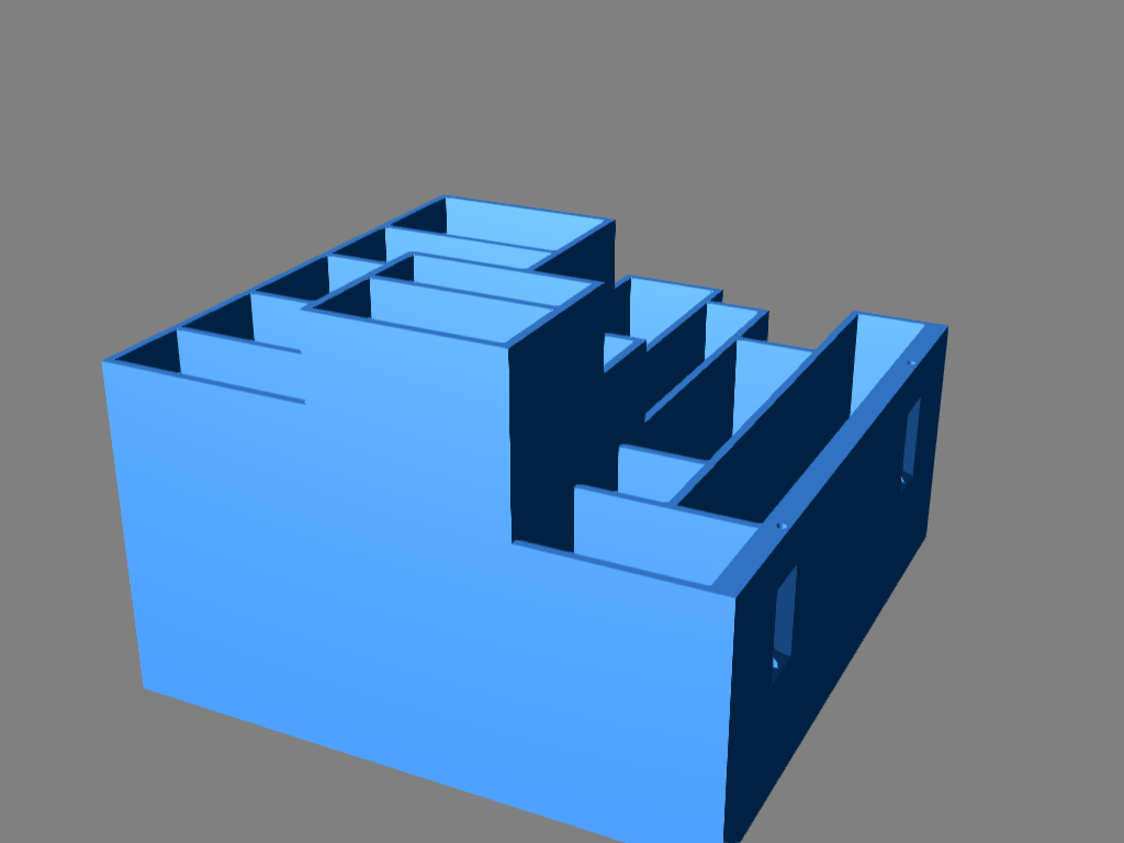 The three OpenSCAD scripts use libraries that have been merged into the code to make them easier to use. Parameters located below the comment stating “Nothing shall be modified below this line” may appear in all three scripts. Changing such a parameter in one script will require updating it in the others as well.