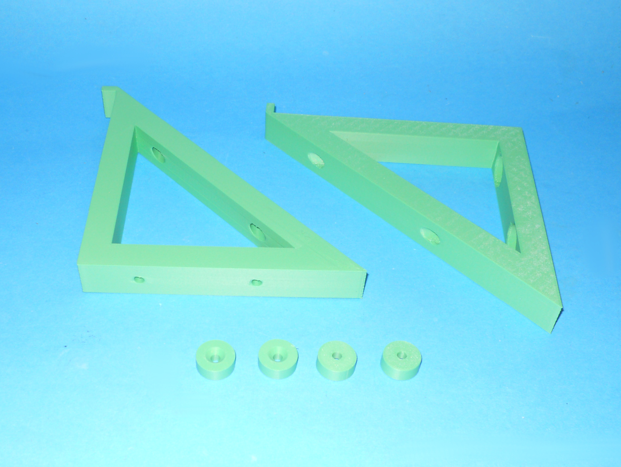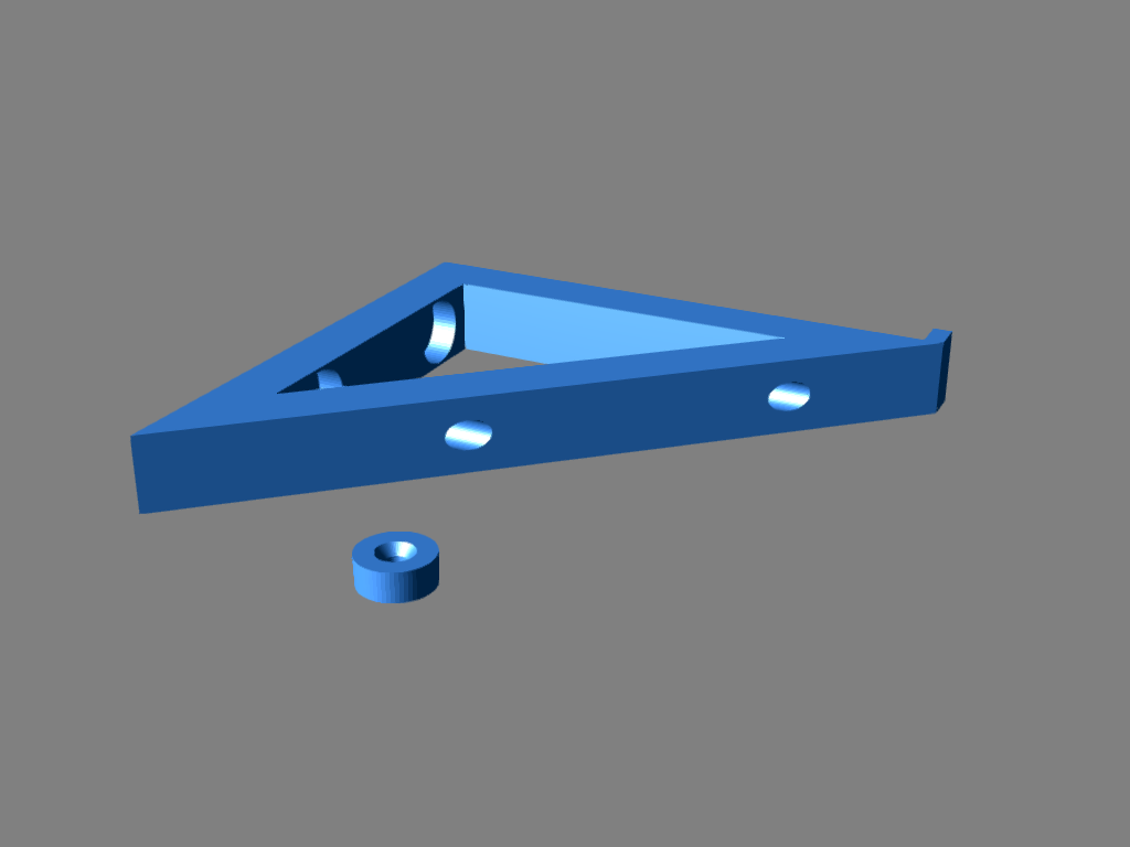 This is a parametric shelf bracket. The screw holders are printed separately to prevent the brackets from splitting if the screws are overtightened. The example provided is designed for #8 wood screws, 1.5 inches in length, and a shelf depth of 5.5 inches.